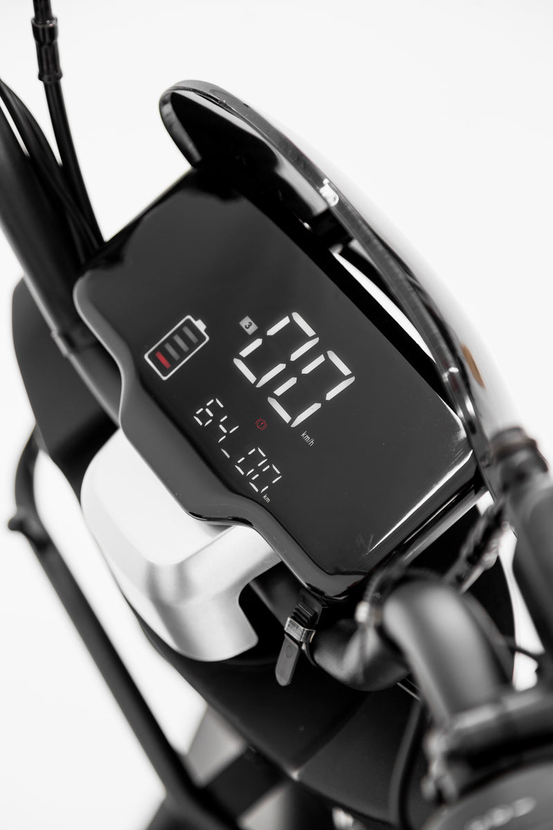 LCD color screen display for easy monitoring of speed, battery life, and other vital stats.